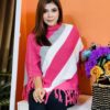 শীতকালে আরাম ও ফ্যাশনের জন্য উপযোগী এই মাল্টি-কালার পঞ্চোটি ট্রেন্ডি ডিজাইনের একটি নিখুঁত উদাহরণ। এর নকশা এবং আরামদায়ক ফিটের কারণে এটি যে কোনো অনুষ্ঠানে পরিধানের জন্য আদর্শ।স্ট্রাইপ ডিজাইনের এবং ঝুলে থাকা ট্যাসেলস (fringe) দ্বারা সাজানো হয়েছে, যা এটি আরও আকর্ষণীয় করে তুলেছে। পঞ্চো বিভিন্ন উপাদানে তৈরি যেমন উল, এক্রিলিক, বা কারুশিল্পের কটন ফ্যাব্রিক।